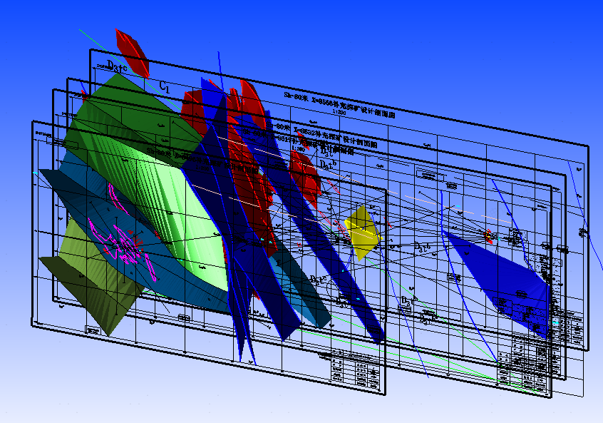 通过学习DIMINE,成功攻克了矿区原始图件平剖面标高不对应的技术难题。针对我矿矿体南北延伸达3000m、巷道工程坡度变化大的复杂条件,创新采用巷道控制点连线→线附高程赋值的建模方法,精准还原了矿体界线的真实空间赋存状态。基于此建立的全矿区三维矿体模型与实时更新的钻孔数据库,实现了三大技术突破:地质资料动态综合处理、数字化自动成图与三维可视化仿真、地质圈定-采矿设计全流程线上协同运行。