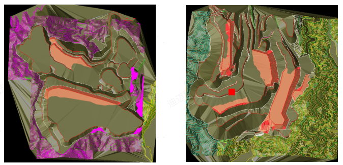 图2-采用DIMINE“填挖方量”测量工具对排土场作业量进行绘制